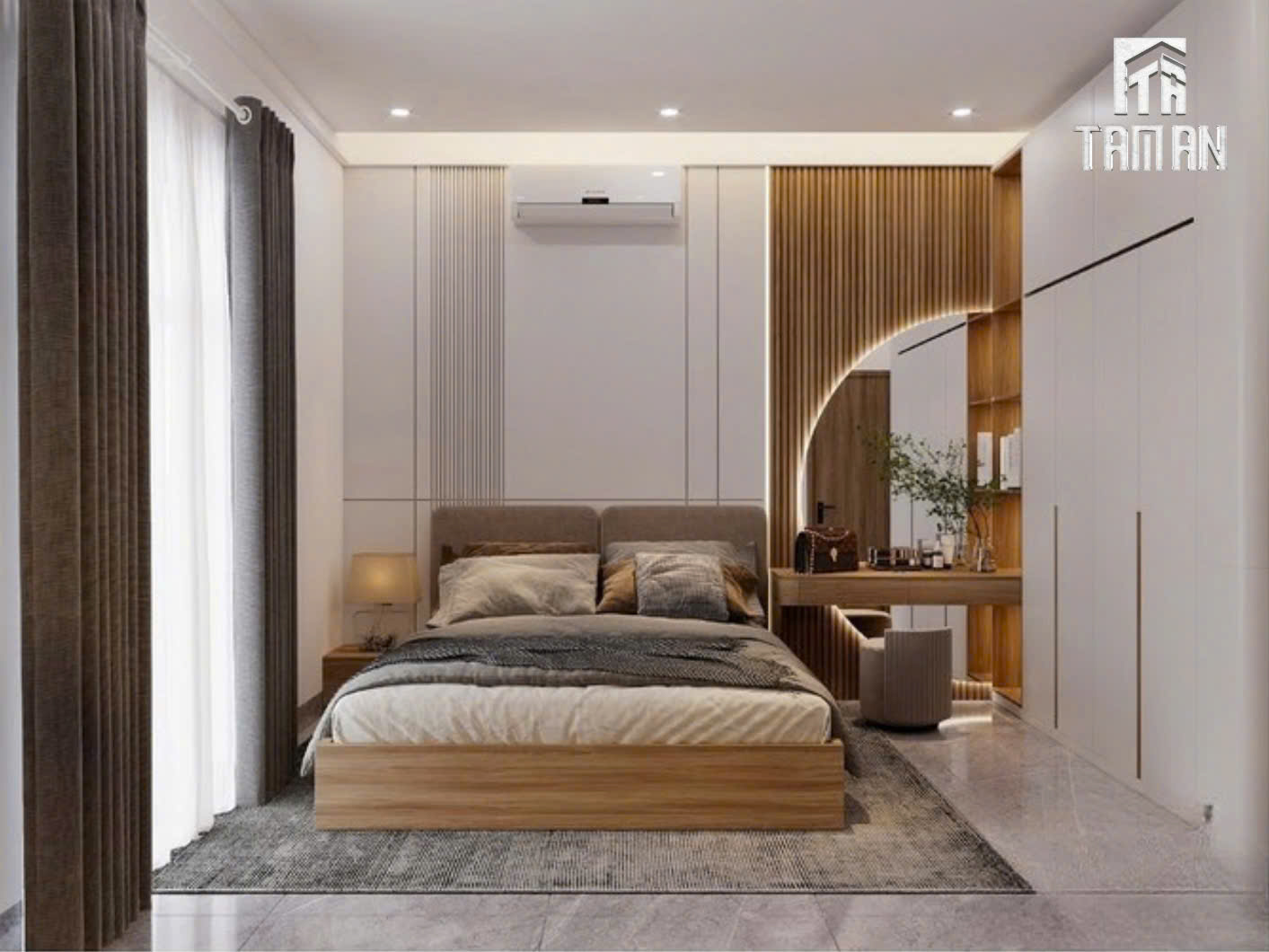 Phòng ngủ được thiết kế theo phong cách hiện đại, hướng đến sự thoải mái, tiện nghi và thư giãn cho người sử dụng. Không gian sử dụng các đường nét đơn giản, hình khối rõ ràng, hạn chế chi tiết rườm rà nhằm tạo cảm giác nhẹ nhàng và dễ chịu.