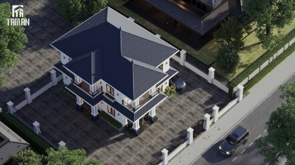 Sân vườn, ban công và giếng trời được bố trí hợp lý.