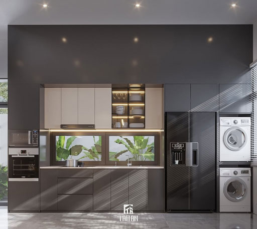 Thiết bị âm tường: Bếp từ, hút mùi, lò nướng, lò vi sóng, máy rửa bát.