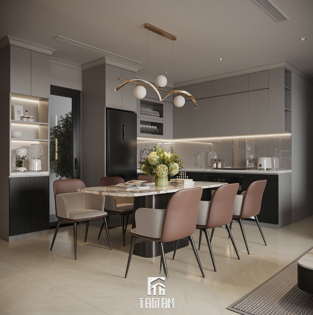3. Phòng bếp và bàn ăn: Gọn gàng, hiện đại, tôn lên giá trị sống tiện nghi