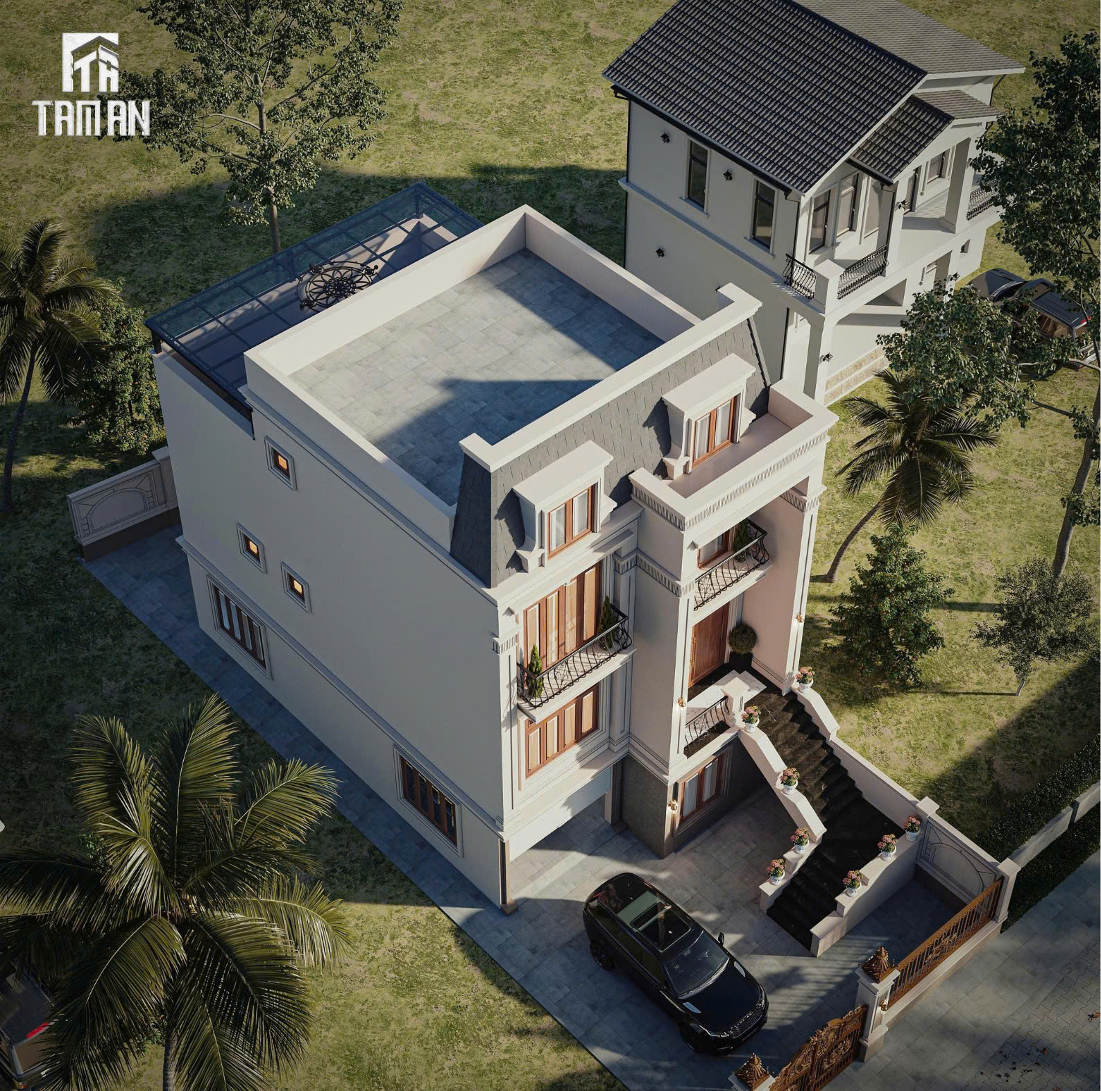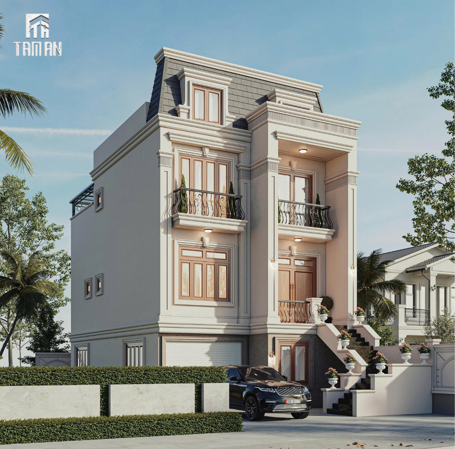 Tọa lạc tại vị trí đắc địa, mẫu nhà phố Hưng Yên dưới đây hiện hữu như một kiệt tác kiến trúc đầy kiêu hãnh, là sự giao thoa hoàn mỹ giữa nét quyền quý của châu Âu cổ điển và hơi thở phóng khoáng của thời đại. Không đi theo lối mòn của những ngôi nhà ống thông thường, công trình chinh phục mọi ánh nhìn bằng sự bề thế của hệ mái Mansard đặc trưng kết hợp cùng những đường nét phào chỉ được tinh tuyển khắt khe. Đây không chỉ đơn thuần là một dự án nhà ở, mà còn là bản tuyên ngôn về gu thẩm mỹ thượng lưu và khẳng định vị thế độc tôn của gia chủ tại mảnh đất Hưng Yên giàu truyền thống.