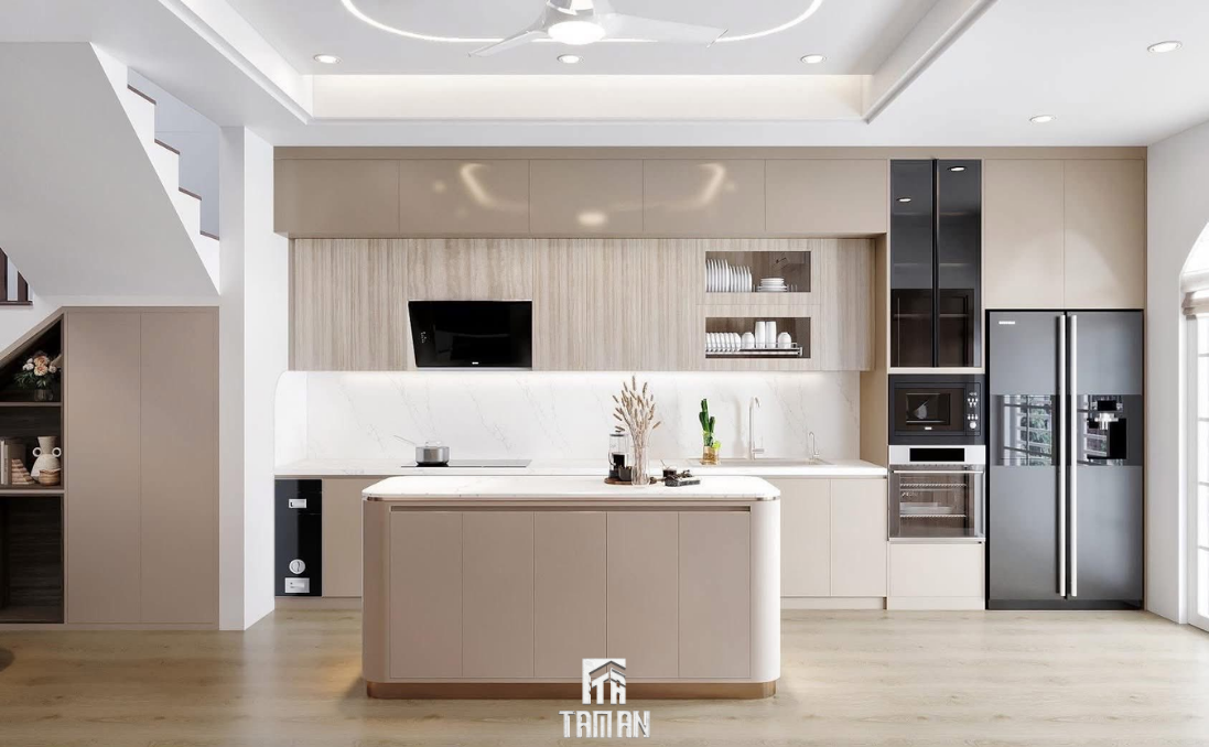 Không gian mở: Phòng khách – bếp – sân vườn liên thông, tạo cảm giác liền mạch và rộng bất tận.