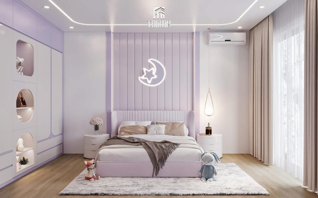 Tone màu chủ đạo: Trắng, xám nhạt, gỗ tự nhiên – tươi sáng, nhẹ nhàng và sang trọng.