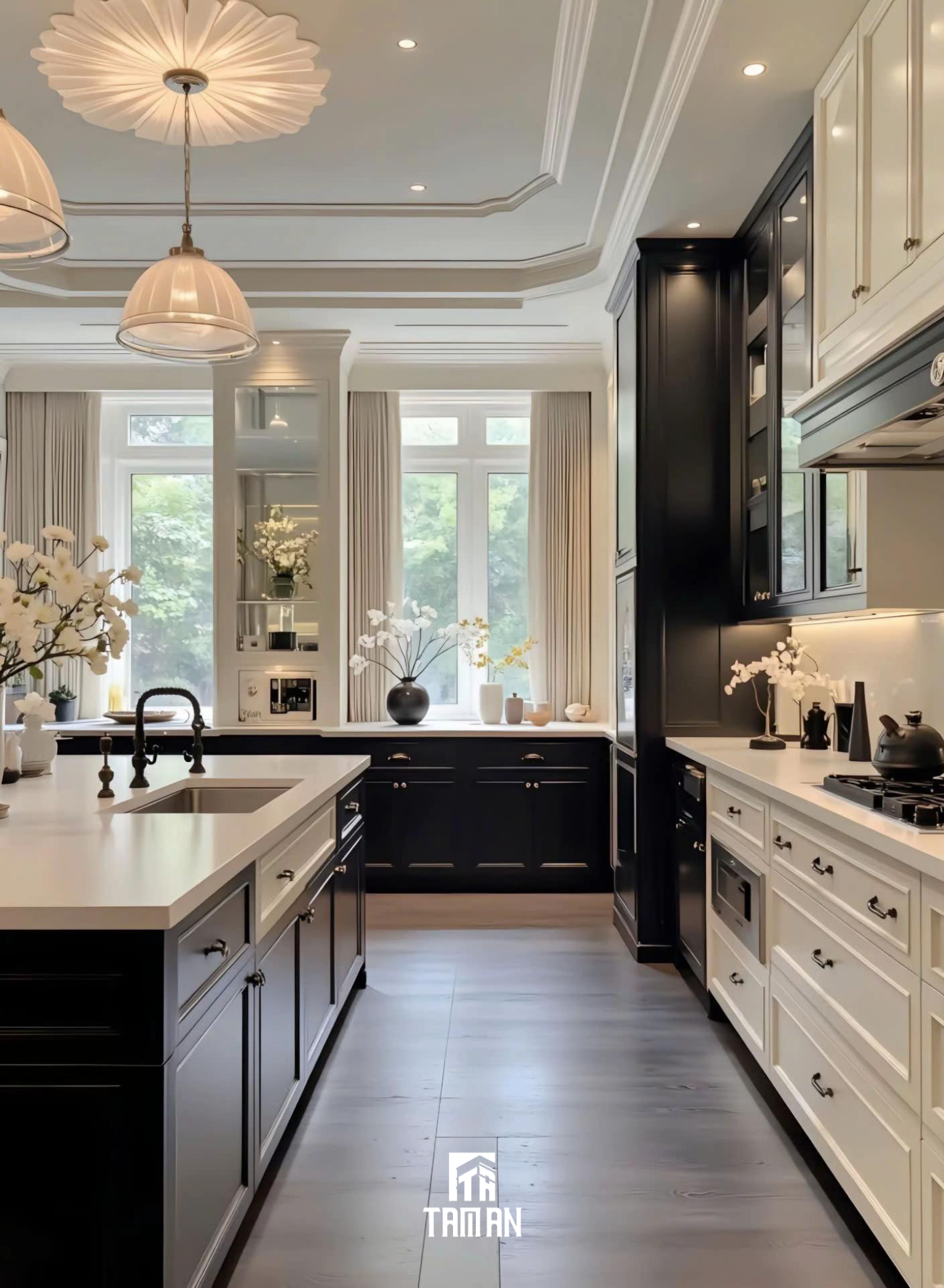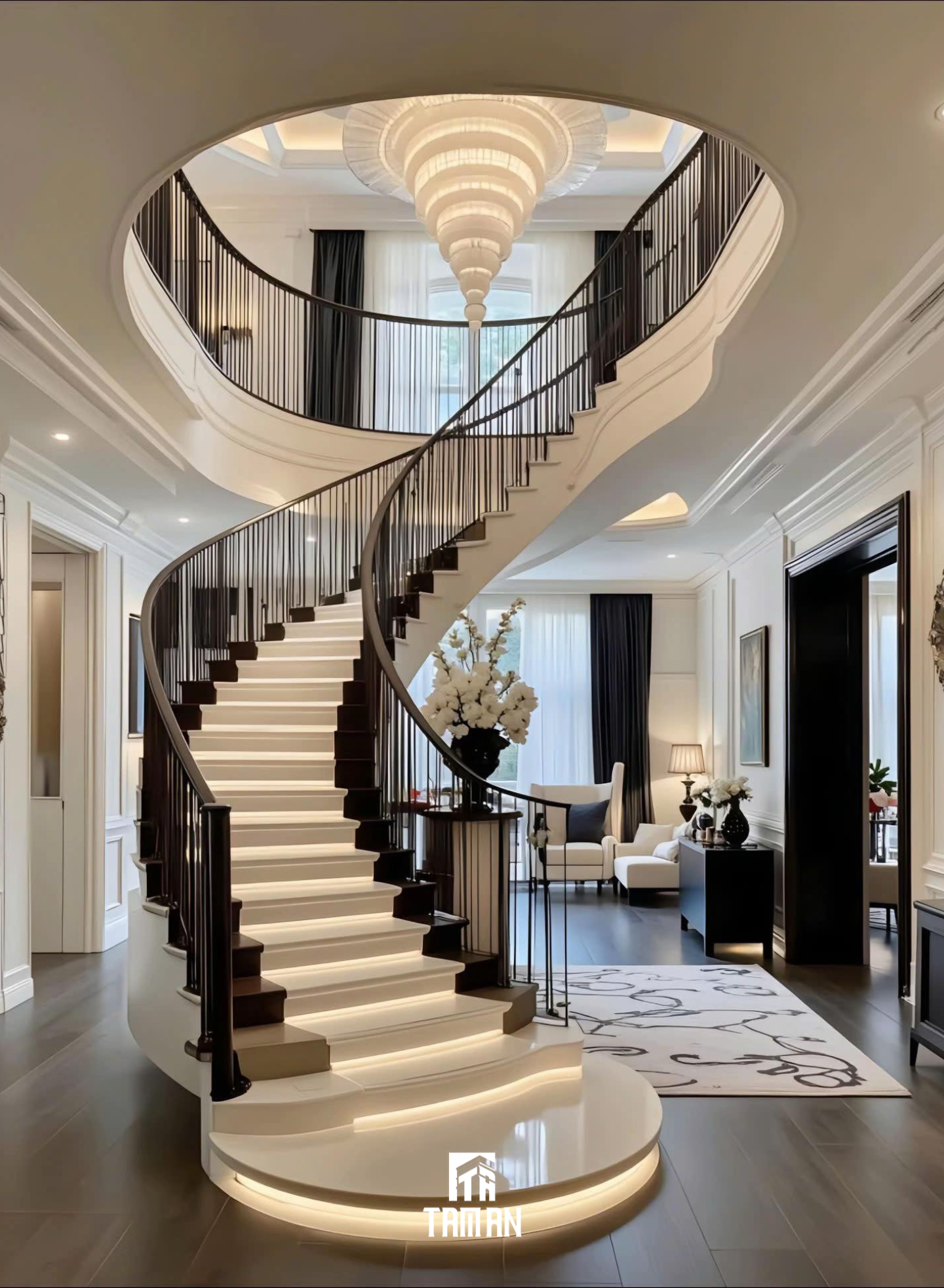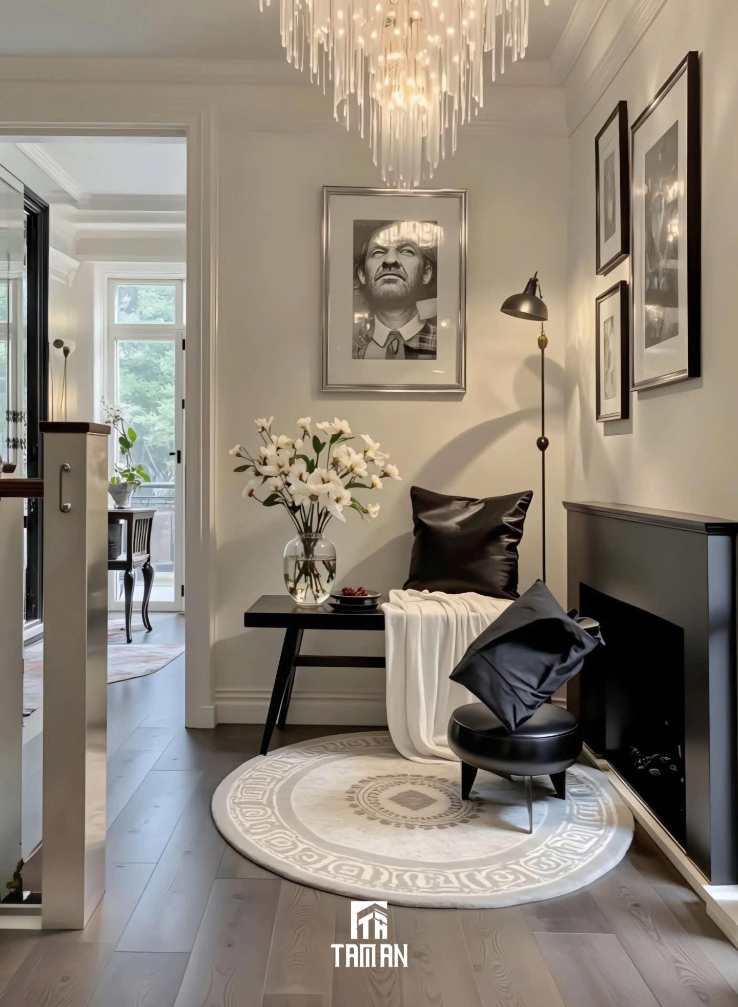 Cuối cùng, hệ thống ánh sáng đa tầng với các dải LED âm và đèn rọi điểm đã hoàn thiện bức tranh không gian đầy nghệ thuật. Dưới sự tính toán kỹ lưỡng, ánh sáng không chỉ làm nhiệm vụ chiếu sáng mà còn tôn vinh các khối kiến trúc và vật liệu, khẳng định giá trị bền vững của phong cách thiết kế nội thất tân cổ điển theo thời gian.
